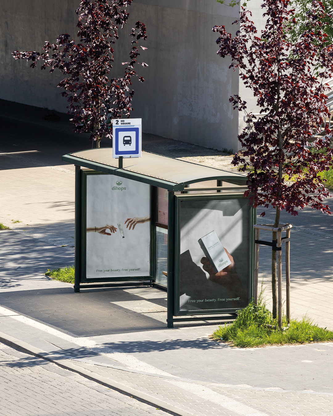 Dihops est une marque fictive que j’ai imaginée dans le cadre d’un brief créatif autour de la cosmétique inclusive et non genrée.